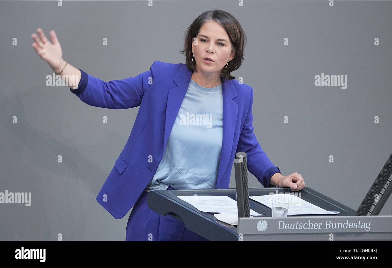 Berlin Germany 07th Sep 2021 Annalena Baerbock Candidate For Chancellor And Party Leader Of Bundnis 90 Die Grunen Speaks In The Plenary Session Of The German Bundestag In What Is Expected To Be